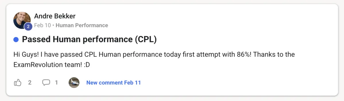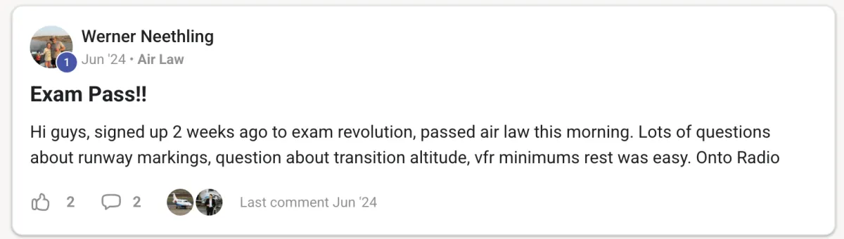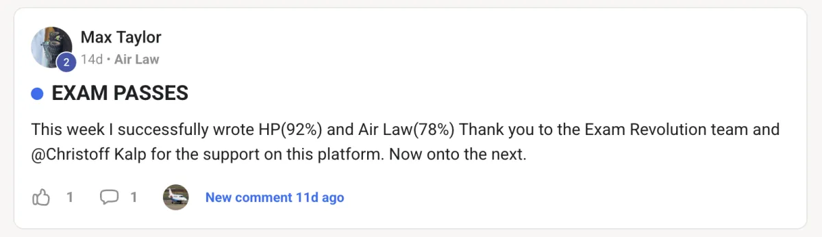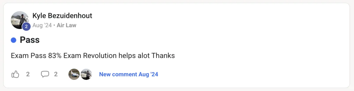 ExamRevolution has given me the confidence and tools to pass my flying exams easier, quicker and with really good results. Top program!